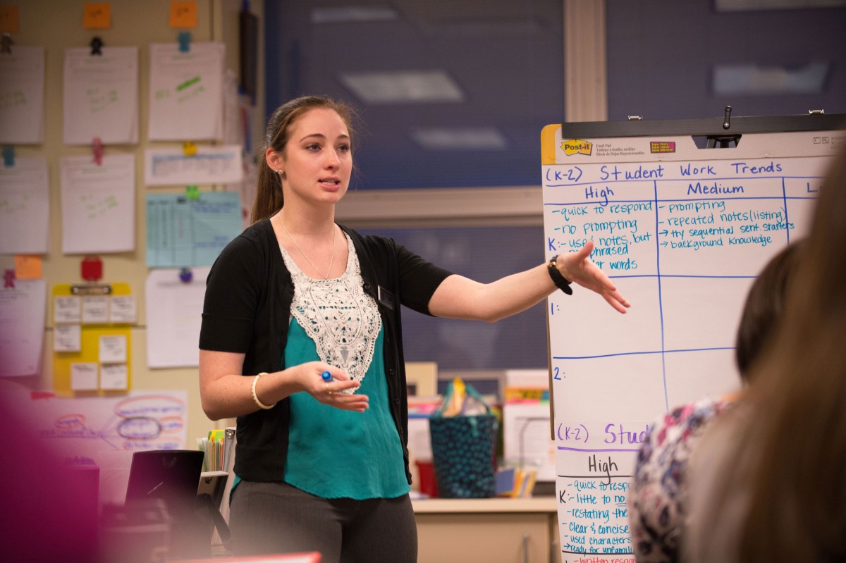In the TAP System, schools form leadership teams made up of master and mentor teachers, who, along with administrators, drive instruction. They look at data to set goals and develop strategies that address specific needs of faculty and students. Teacher leaders organize weekly professional development to provide support to faculty and follow up regularly with individual coaching in classrooms.